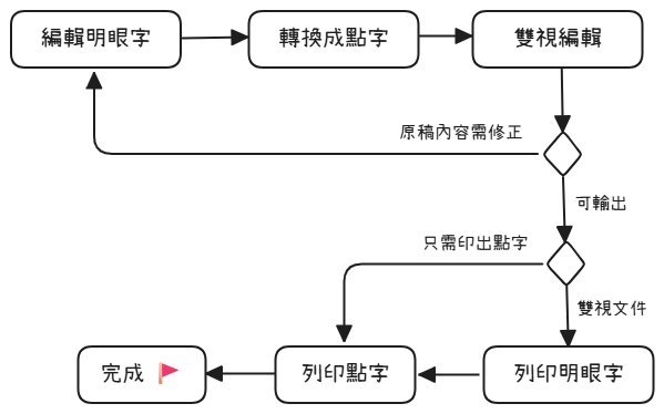 點字文件的製作流程如下圖: